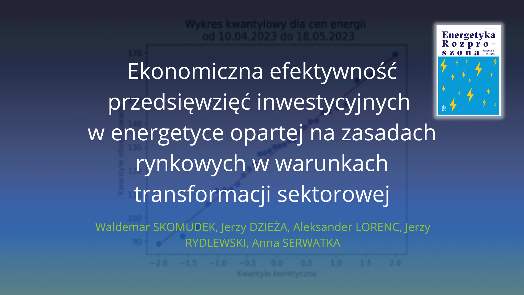 Zapraszamy do lektury artykułu pt. "Ekonomiczna efektywność przedsięwzięć inwestycyjnych w energetyce opartej na zasadach rynkowych w warunkach transformacji sektorow". Publikacja prezentuje kompleksowe i innowacyjnego podejścia do oceny ekonomicznej efektywności przedsięwzięć inwestycyjnych w energetyce z perspektywy interdyscyplinarnej, łączącej wiedzę z zakresu energetyki, ekonomii oraz matematyki stosowanej.