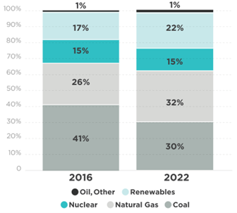 Rysunek 2. Udziały poszczególnych technologii wytwarzania energii w miksie spółdzielni energetycznych w USA.