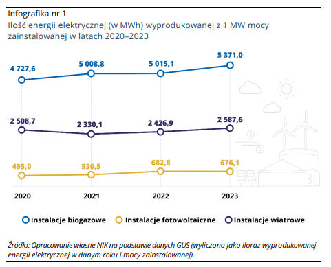 Polska posiada piąty co do wielkości potencjał krajowej produkcji biometanu w UE i wynosi ok. 3,3 mld m3 (największy potencjał mają Niemcy – 8,1 i Francja – 7,0). W przeciwieństwie do innych OZE, biopaliwa gazowe nie są źródłami pogodozależnymi, dzięki czemu mogą skutecznie stabilizować system elektroenergetyczny, szczególnie na obszarach wiejskich, gdzie jest łatwy dostęp do substratów paliwowych (odpady rolnicze). Ponadto, jak podają autorzy raportu na podstawie danych GUS, instalacje tego typu mogą być od dwóch do siedmiokrotnie razy bardziej efektywne w porównaniu ze standardowymi OZE. Jednak w 2023 roku biogazownie odpowiadały tylko za 3,2% krajowej produkcji energii ze źródeł odnawialnych. Kontrola NIK miała znaleźć przyczyny tak niskich efektów, mimo znacznych, a niewykorzystanych możliwości.