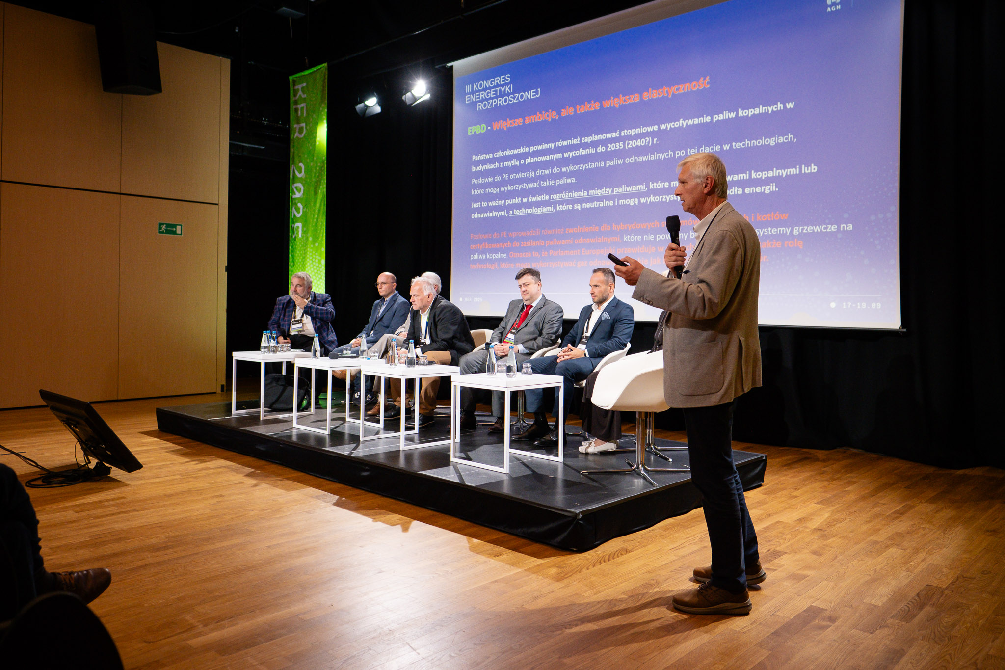 Podczas sesji „Transformacja energetyczna budynków”, która odbyła się 18 września w Centrum Kongresowym ICE Kraków, eksperci z obszaru budownictwa, energetyki, administracji i nauki dyskutowali o wyzwaniach i możliwościach, jakie stoją przed sektorem budynków w obliczu nowych wymagań Unii Europejskiej. Moderatorerm sesji był Arkadiusz Węglarz, Doradca Zarządu ds. Gospodarki Niskoemisyjnej KAPE. W dyskusja panelowej udział wzięli: Paweł Kwasnowski, Akademia Górniczo-Hutnicza; Paweł Lachman, Prezes Port PC ; Artur Łeszczyński, Skanska Residential Development Poland; Andrzej Łazęcki, Dyrektor Wydziału Gospodarki Komunalnej i Klimatu, Urząd Miasta Krakowa; Przemysław Perczyński, Główny Specjalista MRiT; Bartosz Radkowiak, Prezes Zarządu ESCOlight; Beata Sadowska, Politechnika Białostocka; Janusz Starościk, Prezes Stowarzyszenia Producentów i Importerów Urządzeń Grzewczych.